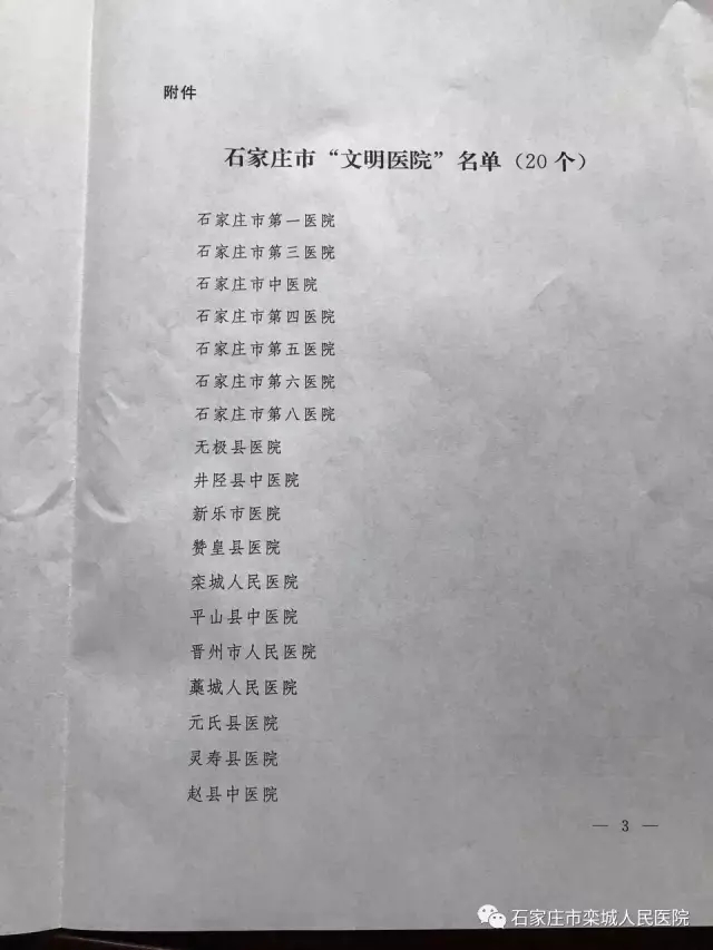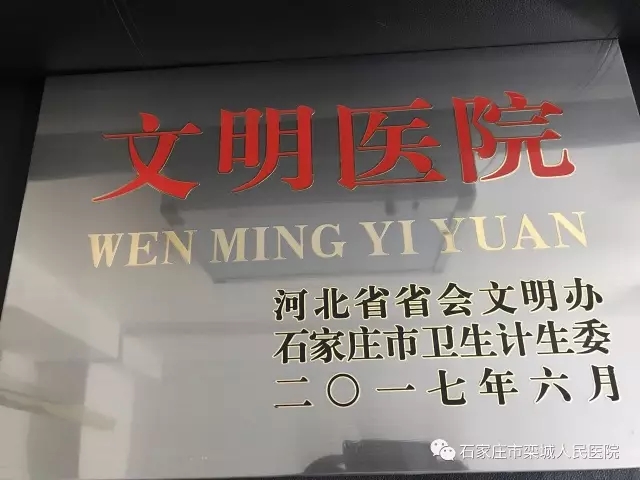 7月17日,我院从石家庄市卫计委领导手中接过了“石家庄市文明医院”牌匾,标志着我院文明医院创建工作上了一个新台阶。