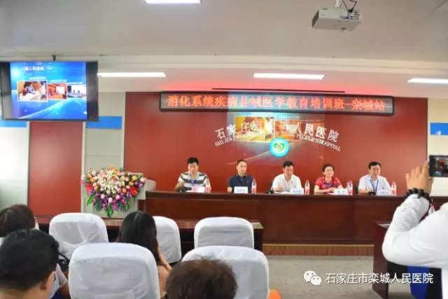 培训班开幕式由我院副院长张金旗主持,区卫计局医政医管科科长郭子更、我院副院长王军力出席开幕式并致辞,同济大学附属上海第十人民医院、河北医科大学第二医院、第三医院、第四医院、河北大学附属医院、石家庄市第一医院等6名消化专业教授进行了现场授课,他们将国内外最先进的理论及知识分享给参会人员,既开拓了视野,又提高了认识,受到与会人员的热烈欢迎。