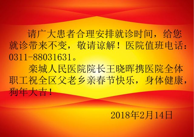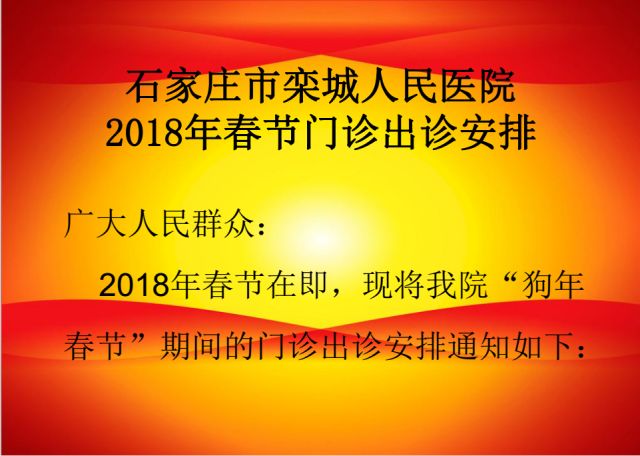 栾城人民医院2018年春节门诊出诊安排